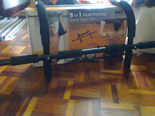 Now this baby is what I love the most. this is the 5 in 1 Door Gym Set. With this I can do chin ups, pull ups, elevated crunches (when I install it at the top part of the door), sit ups, crunches and even dips (when I install it at the bottom part of the door) It's really sturdy and safe, I recommend you people to buy this than the normal chin up bar, trust me it's worth the money ; ) Here's a look on how it works (pictures below)